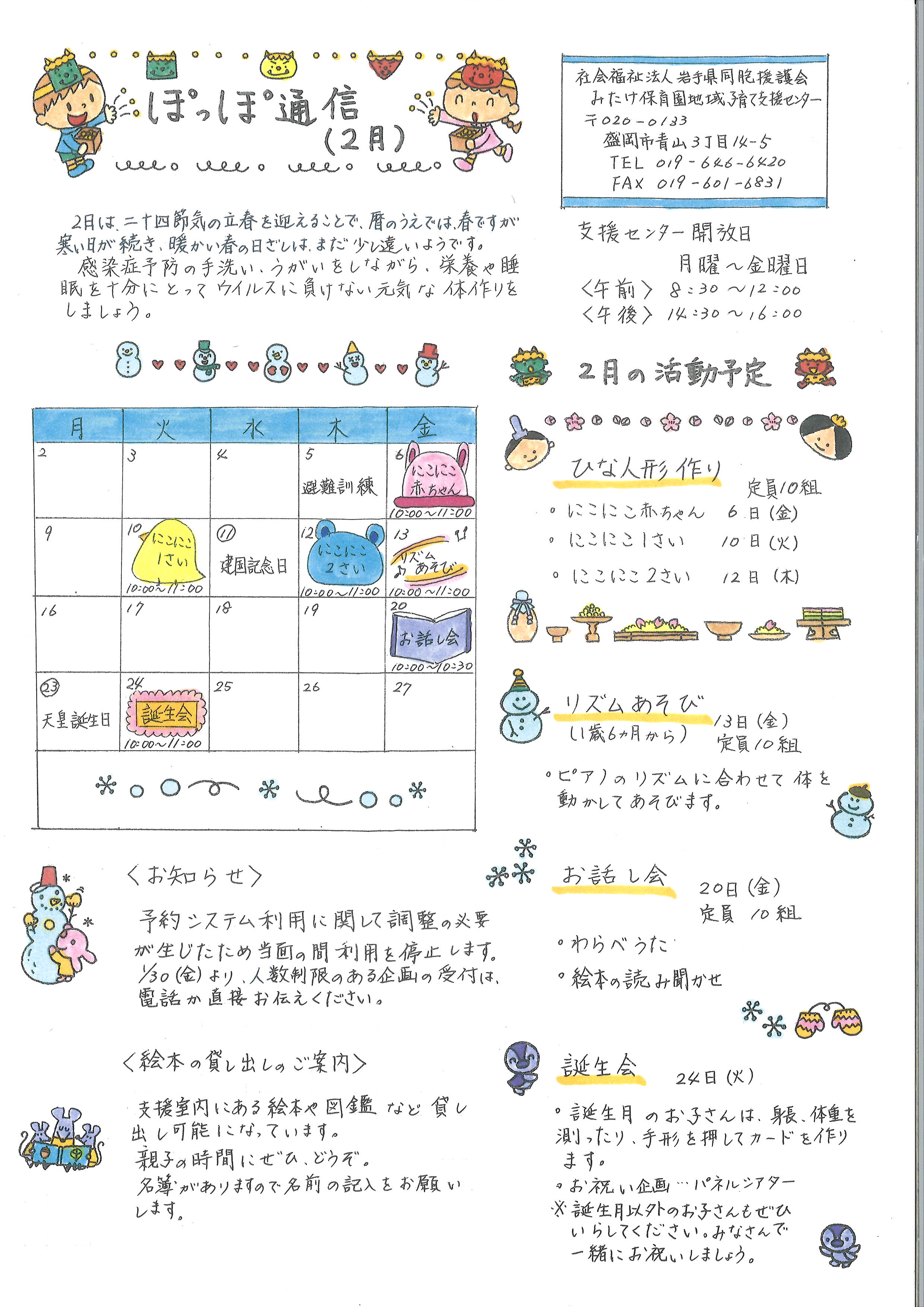 給食体験会、健康講座、リズム遊び・お話し会を行います。