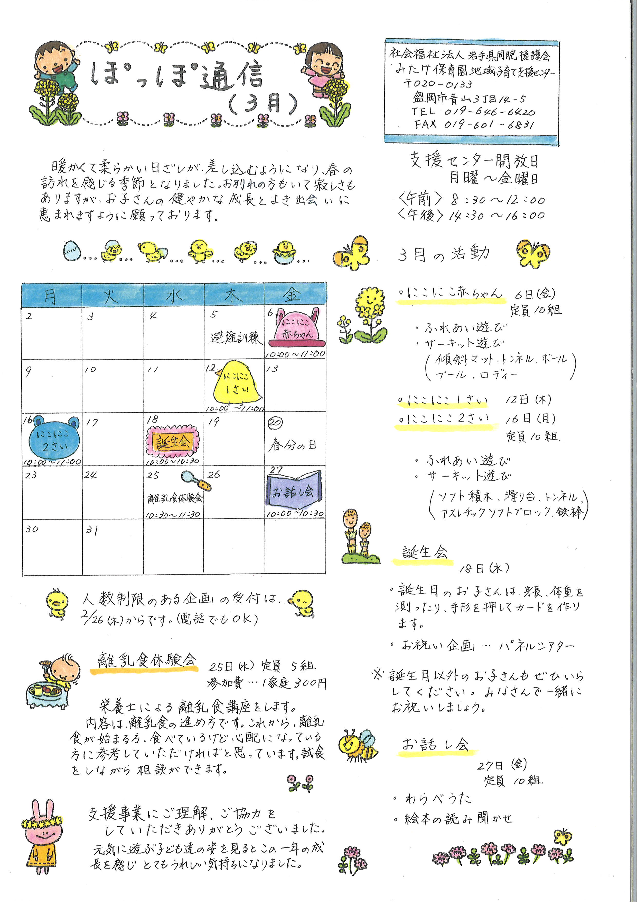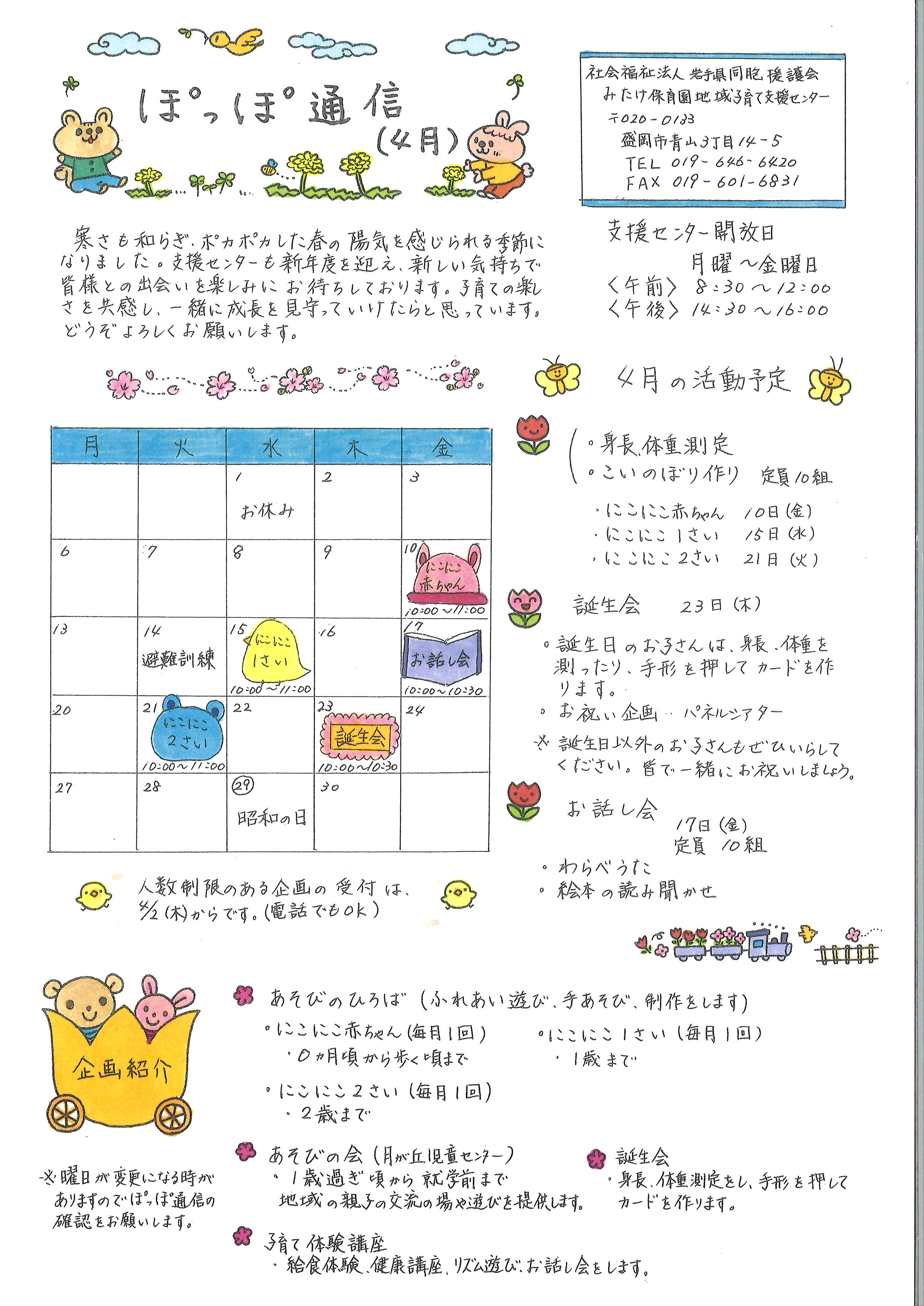 みたけ保育園地域子育て支援センターは、子育て中のお母さんを応援するために、様々な講座を開催したり、園の開放や子育て情報を提供しています。